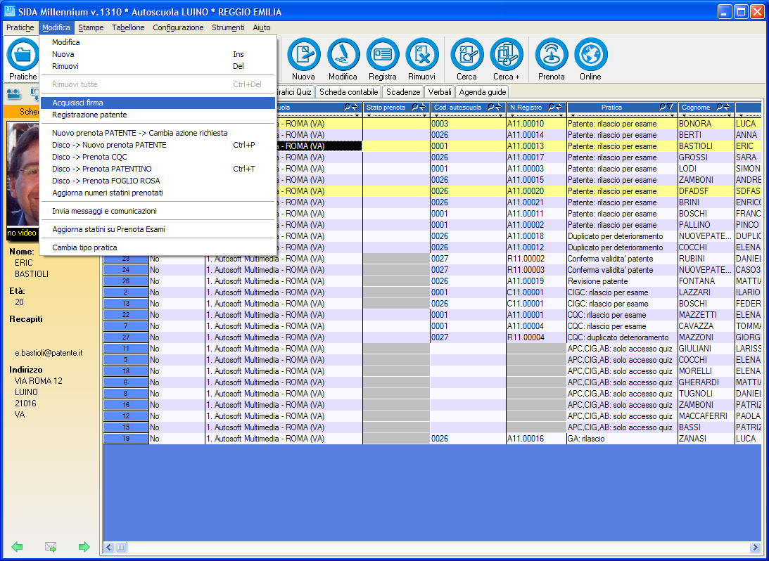 Selezionando la voce "Nuovo prenota PATENTE - Cambia azione richiesta", selezionate "Inserisci/modifica foto e firma". Nella pratica dovrà essere già presente la marca operativa della prenotazione.