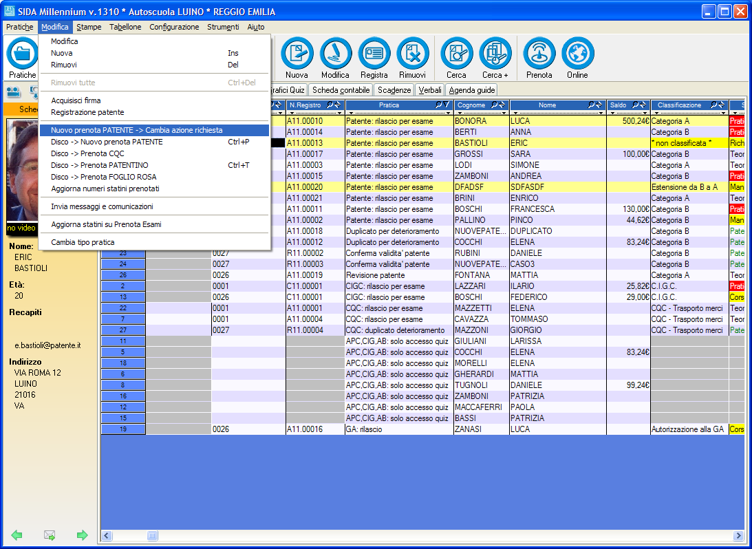 Di seguito trovate le principali novità operative introdotte nel modulo Gestione di SIDA, a seguito delle nuove procedure informatiche di prenotazione adottate dal CED secondo quanto previsto dalla normativa europea sulle nuove categorie di patenti.