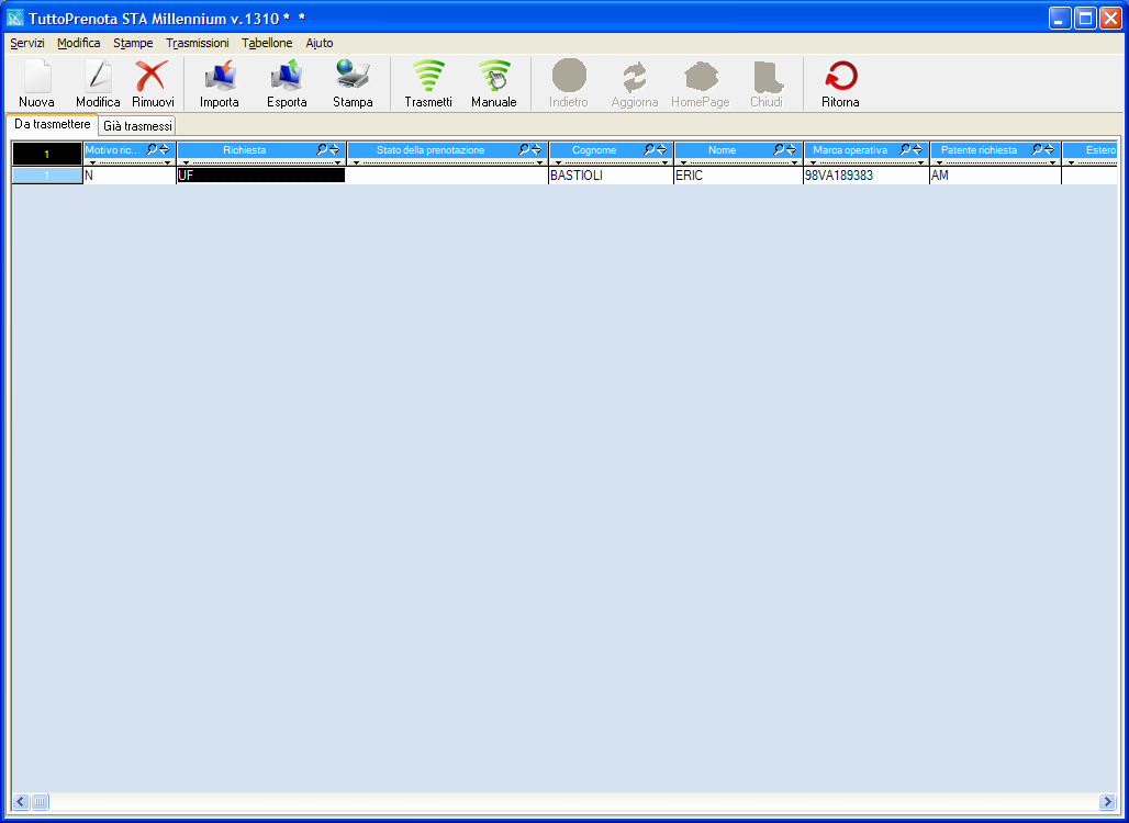 Quando la pratica è completa fare clic su OK. Si possono preparare con calma tutte le pratiche da trasmettere e poi trasmetterle con un unico Trasmetti
