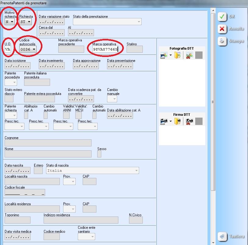 • IP: permette di inserire nel CED la richiesta di patente per esame o duplicato con o senza foto e firma;
