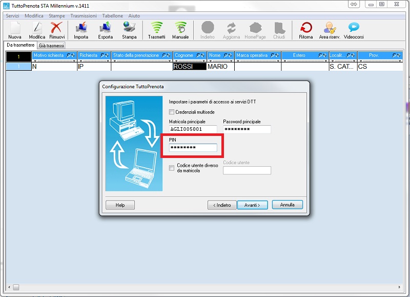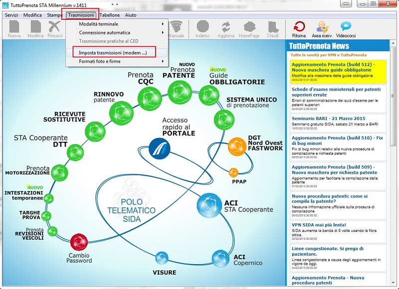Il collegamento e trasmissione verso ACI/PRA è invece purtroppo momentaneamente impossibile da effettuare tramite SIDA VPN.