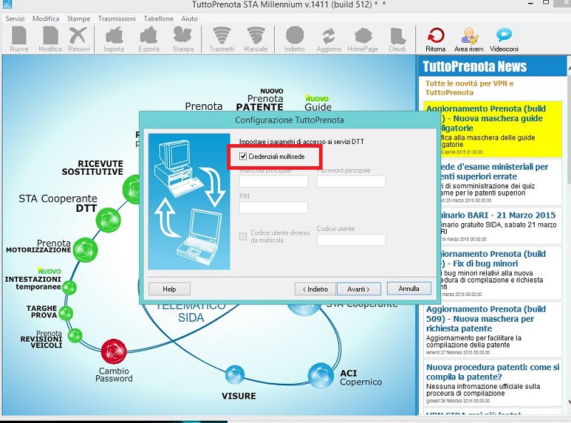 Se nel passo 2) vi appare il flag in Credenziali multisede come nella schermata qui sotto: