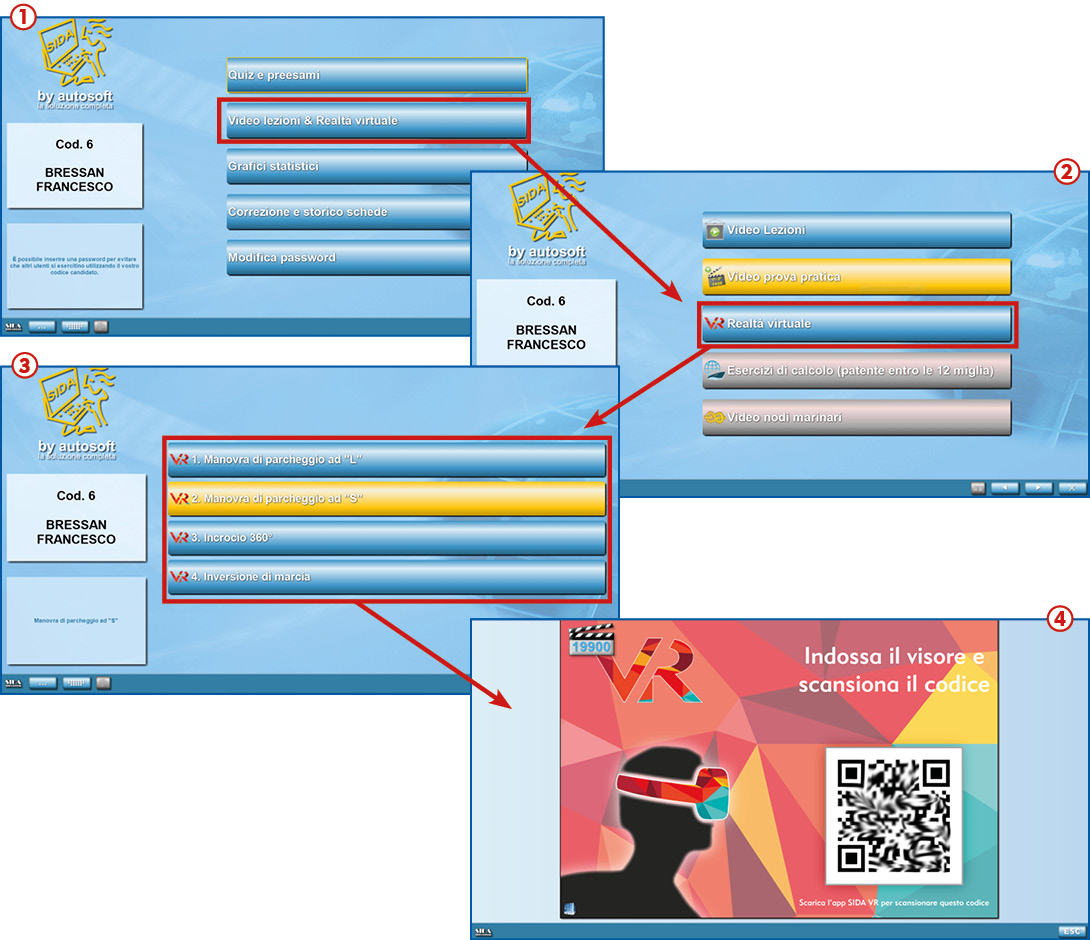questo aggiornamento arricchisce i programmi SIDA QUIZ e SIDA AULA con i contenuti di Realtà Virtuale da utilizzare in autoscuola.