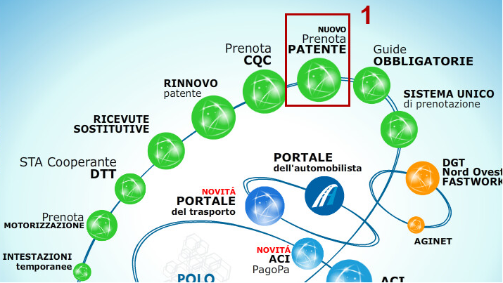(1) Selezionare con un click il pianeta denominato “Nuovo prenota patente”