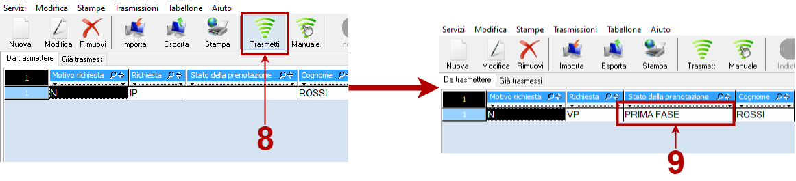 (9) La pratica selezionata andrà nello stato “Prima fase”.