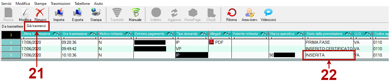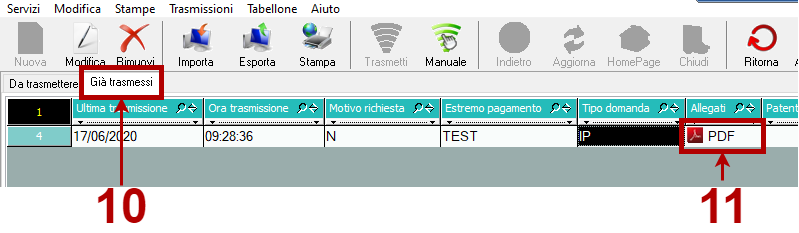(21) Il sistema sposterà automaticamente la pratica dalla scheda “Da trasmettere” alla scheda “Già trasmesse”