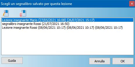 Per modificare o eliminare i segnalibri utilizzare le due icone in alto nella maschera.