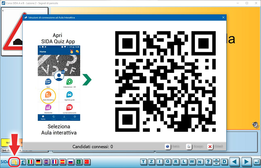 Per rendere più chiaro l'accesso alla funzione di Aula interattiva abbiamo inserito nella barra del tabellone un pulsante che apre la schermata con il codice QR per la connessione dei candidati ad Aula interattiva.