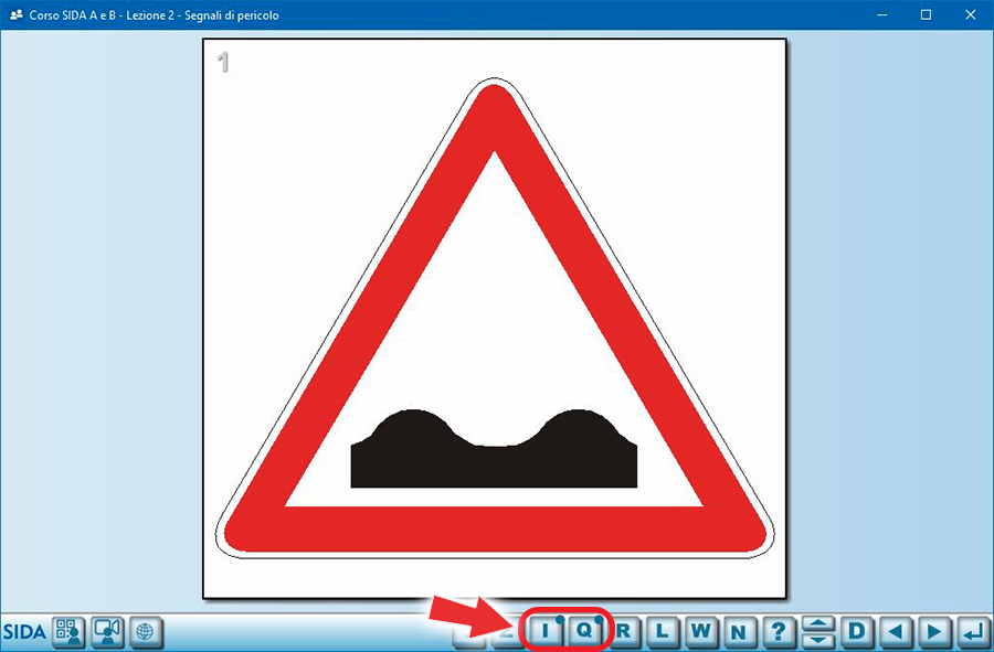Se in abbinamento al segnale ci sono quiz o integrativi, nel tabellone di SIDA appare un pallino in corrispondenza delle lettere Q o I.