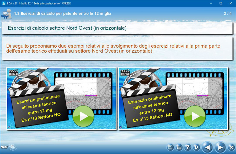 Al momento in questa sezione sono presenti alcuni filmati in cui vengono svolte esercitazioni di carteggio (per patenti entro 12 miglia dalla costa).