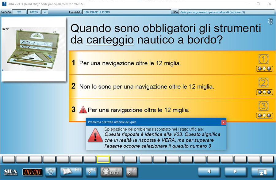 Se invece si esercitano dei candidati senza codice, la scelta tra listato base e vela, potrà essere fatta direttamente da modulo quiz.
