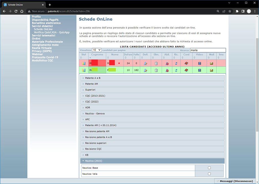 Per i clienti SIDA che si sono registrati nell’area personale del sito www.patente.it, è possibile consultare e assegnare ai propri candidati le schede con i quiz dei listati per le patenti nautiche (Listato nazionale Base e Vela). Possono essere assegnati sia quiz misti da esame, sia quiz suddivisi per argomento.