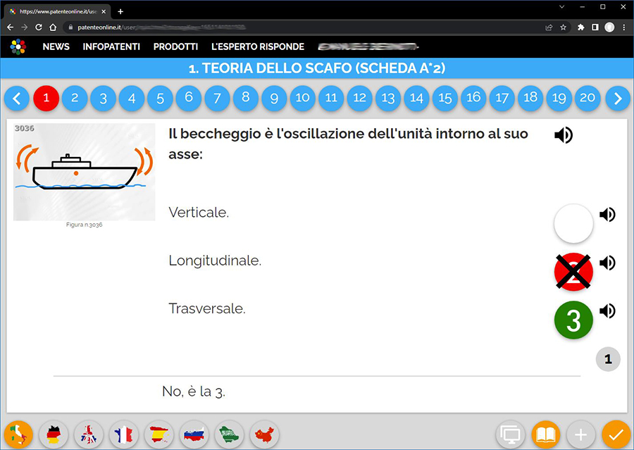 Ecco come si presenta una scheda quiz relativa alla prima lezione "teoria dello scafo":