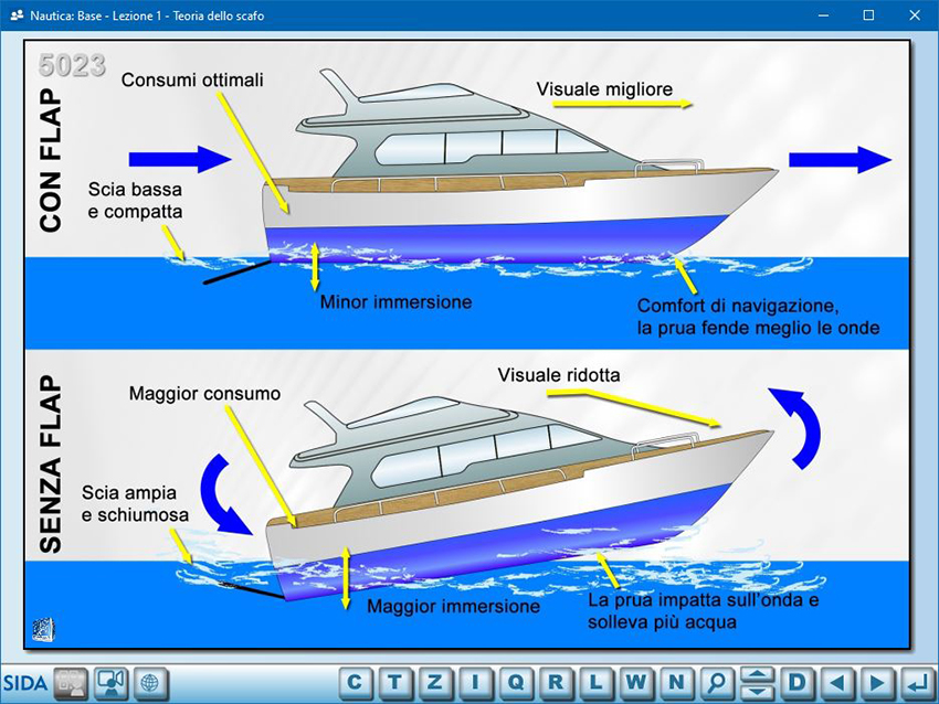 - Dispositivi tecnologici: motore a idrogetto; flap e loro effetto sulla stabilità delle imbarcazioni; nuovi sistemi di trasmissione (POD DRIVE; sistema IPS; SAIL DRIVE)