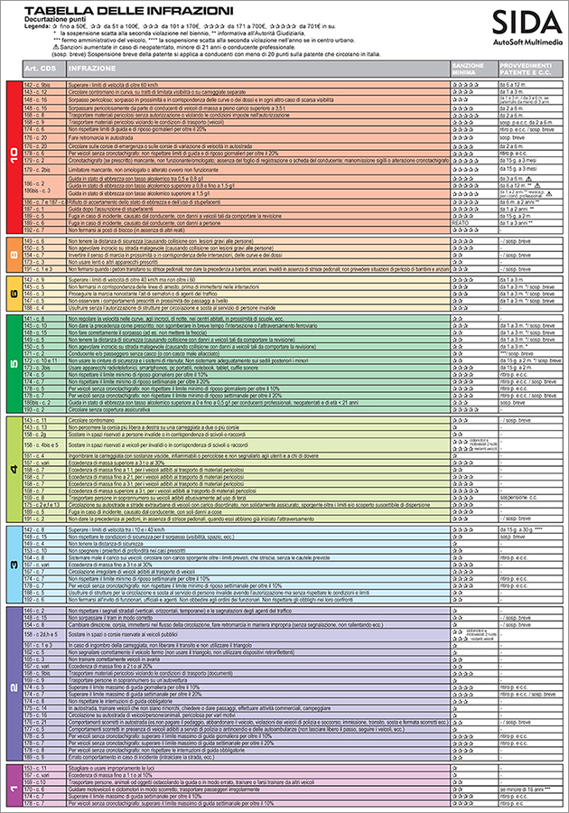 Novità: Aggiornata con le sanzioni e le decurtazioni introdotte dalla legge di modifica al CDS (legge 177/2024).