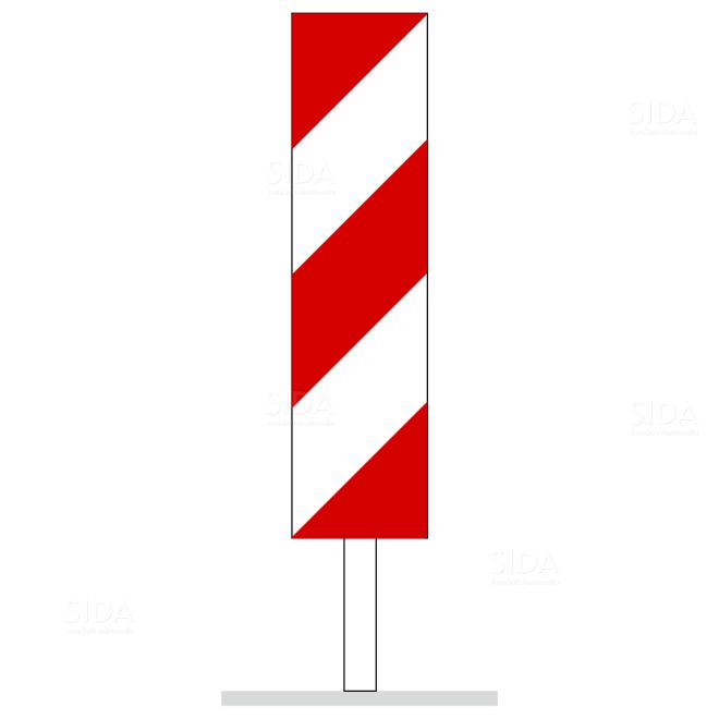 Il delineatore presenta sulla faccia un disegno a punta di freccia bianca su fondo rosso. La dimensione "normale" è 60 x 60 cm, quella "grande" è di 90 x 90 centimetri. |